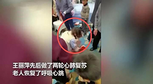 江苏常州护士王丽萍参加婚宴时,一老人突然发病,神志不清。王丽萍赶紧施救,先后做了两轮心肺复苏,帮老人恢复了呼吸心跳。